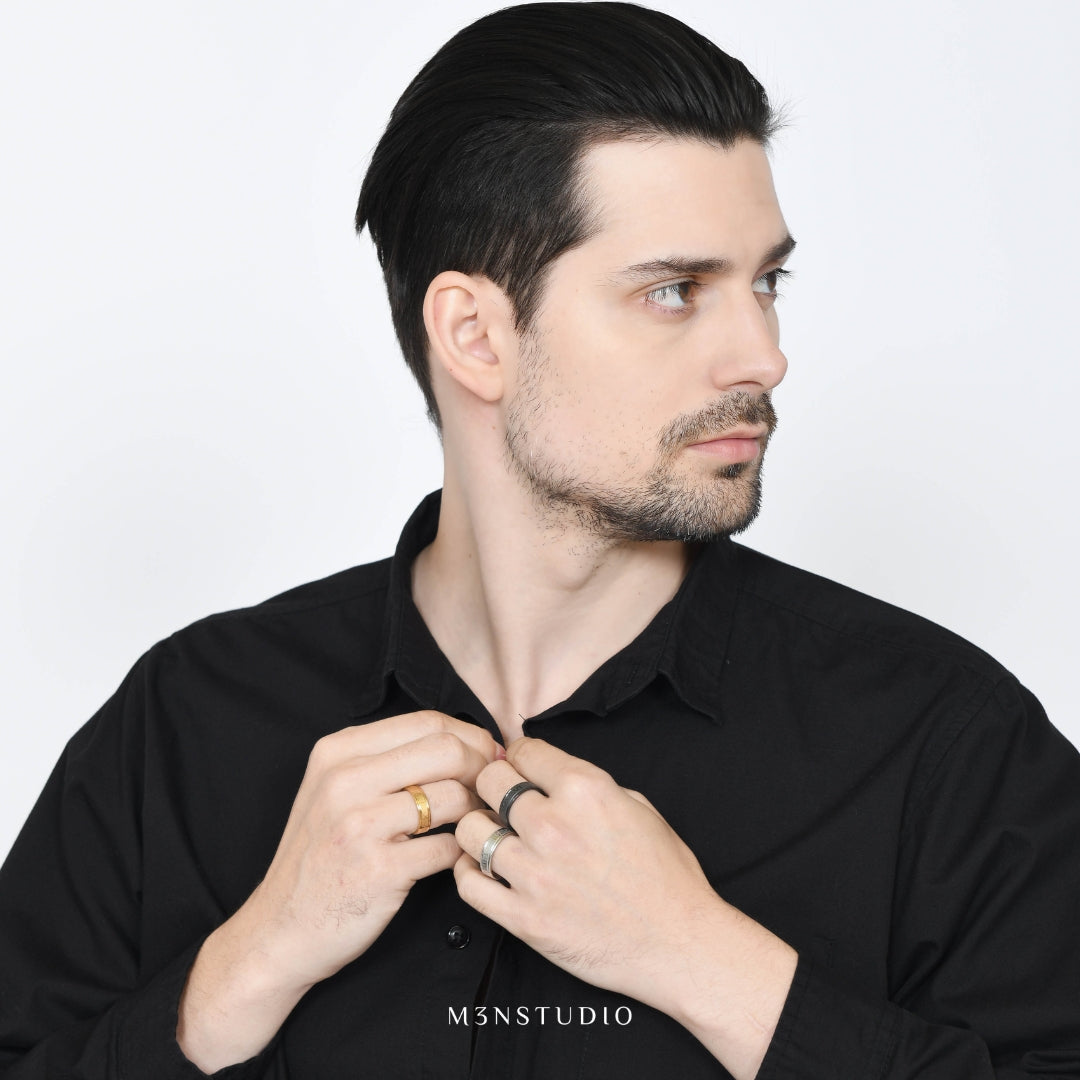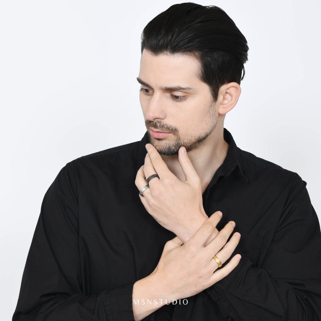 Solan Ring dirancang untuk pria yang menghargai kepercayaan diri dalam kesederhanaan. Dipadukan dengan gaya kasual atau dikenakan sebagai ciri khas sehari-hari, siluetnya yang bersih dan karakter yang tegas menyampaikan banyak hal tanpa perlu kata-kata.